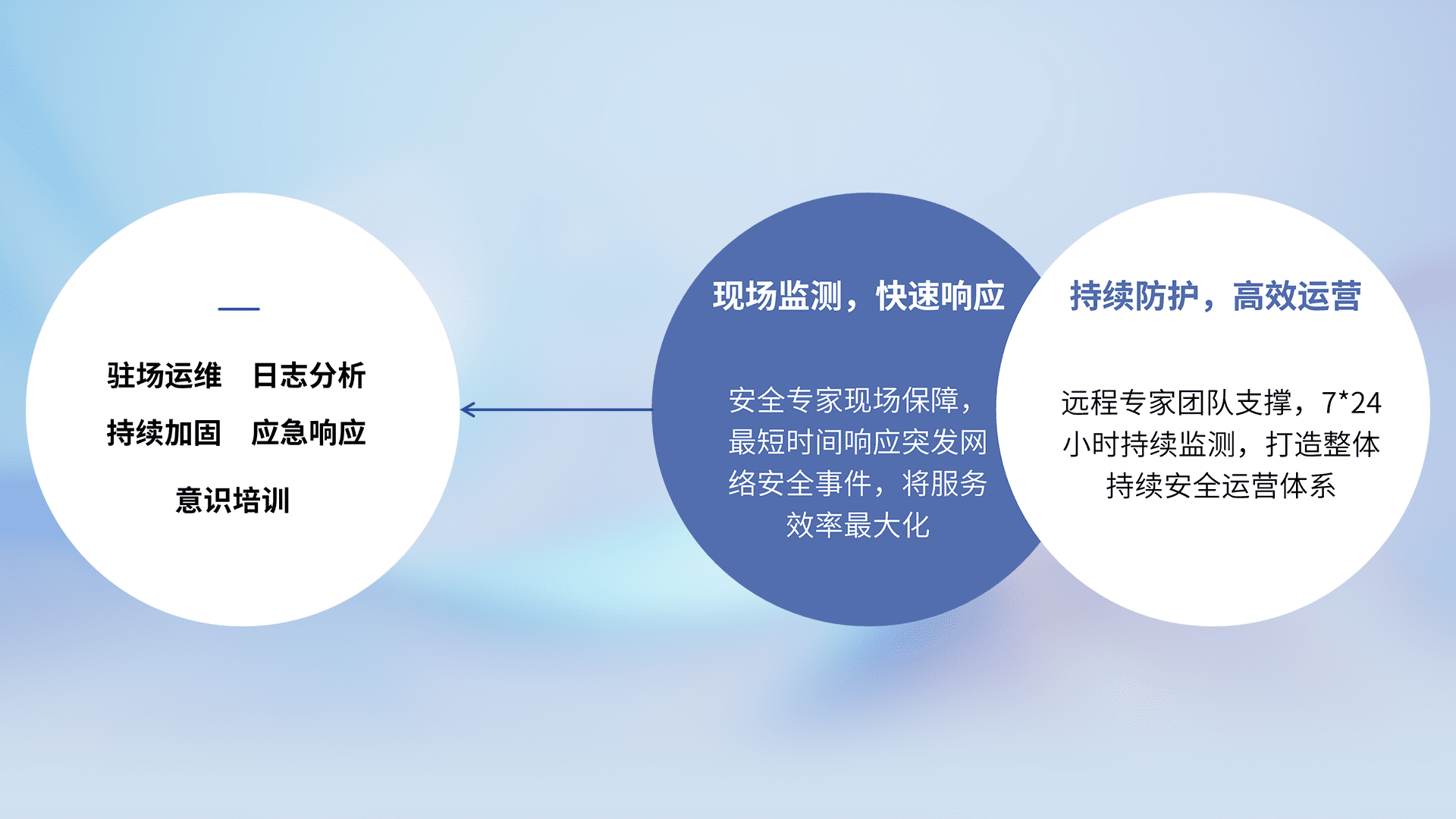 针对客户行业特性,,提供专属的一站式安全管理服务,,,,帮助客户全面感知网络空间威胁,,,通过安全专家的线上、、、、线下防护支持,,实现风险闭环,,将安全保障常态化,,,为客户打造常态化安全运维运营服务。。。